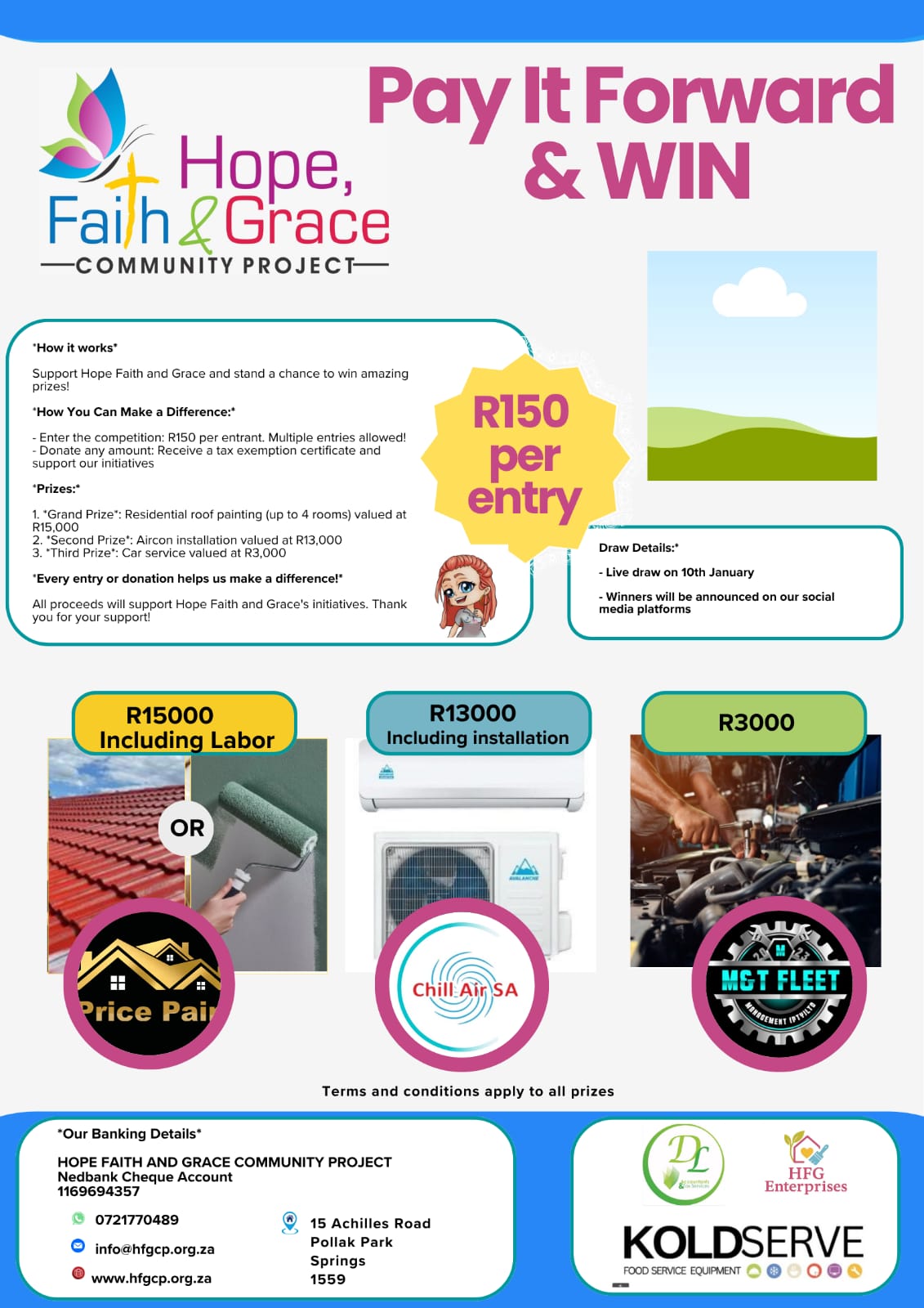- Enter the competition: R150 per entrant. Multiple entries allowed!